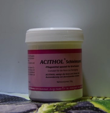 Po zastosowaniu Acithol zalegający śluz, osady i kurz w górnej części zatok upłynniają się i można je usunąć wacikiem. Przez większość czasu gołąb radzi sobie sam, połykając lub wyrzucając śluz.