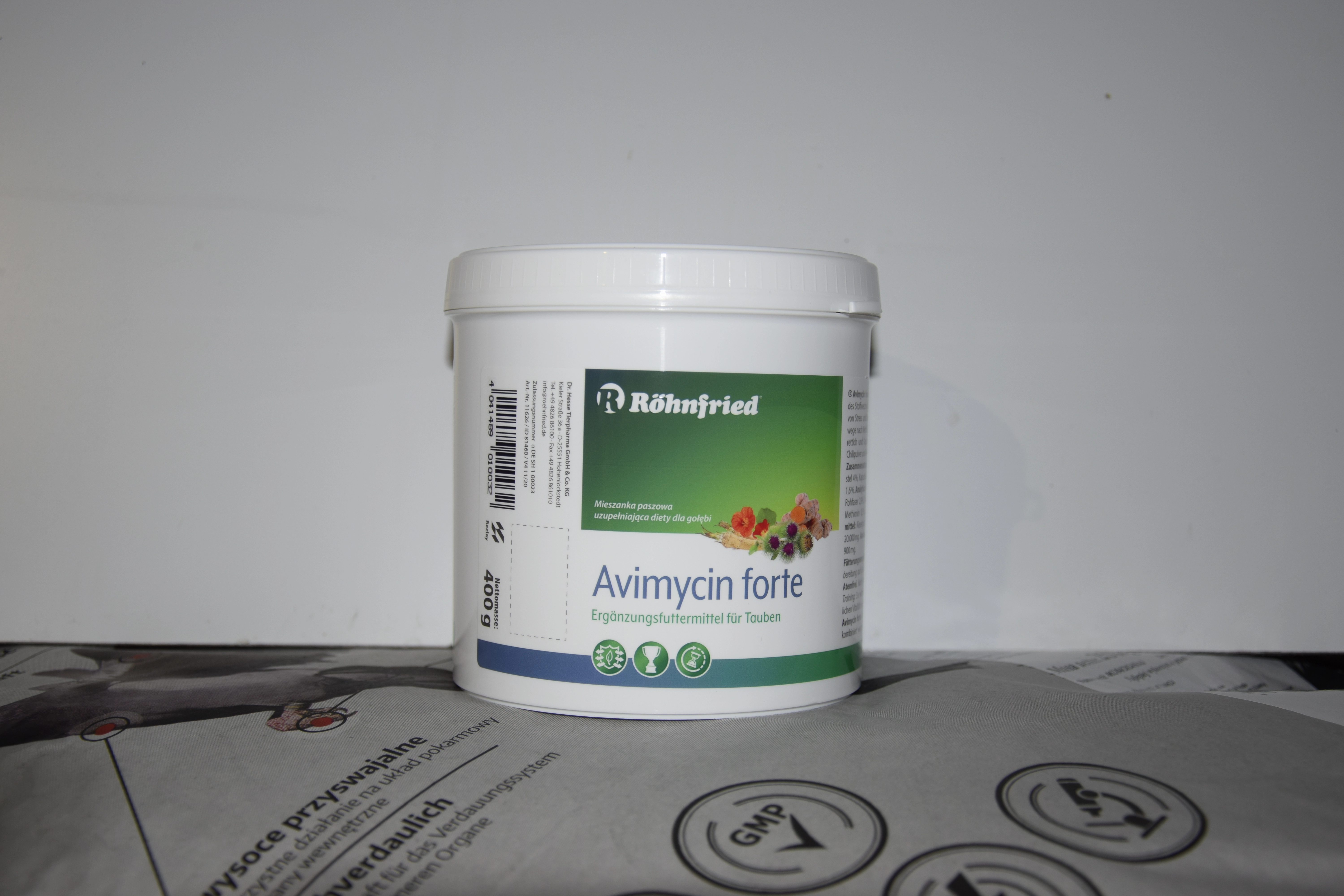 Avimycin forte jest suplementem diety wspierającym i odciążającym procesy metaboliczne (metionina & sproszkowany ostropest plamisty) do zastosowania po przebytej chorobie i przebytym stresie, a także wspierającym funkcjonowanie układu oddechowego po lotach konkursowych. Zawiera obok chrzanu i nasturcji także ostropest plamisty, kurkumę, sproszkowane chili i metioninę.