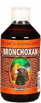 BRONCHOXAN jest naturalnym syropem ziołowym specjalnie sporządzonym do zapobiegania chorobom dróg oddechowych u gołębi pocztowych. Działa antyseptycznie, można go stosować zapobiegawczo i leczniczo do uwolnienia górnych dróg oddechowych i ułatwienia oddychania. Zawiera substancje chroniące przed chorobami górnych dróg oddechowych i osłaniające oskrzela. Znacząco ogranicza stany zapalne dróg oddechowych i wspomaga ich oczyszczenie. W przypadku zapalenia rozpuszcza flegmę i ułatwia wydalanie wydzieliny.