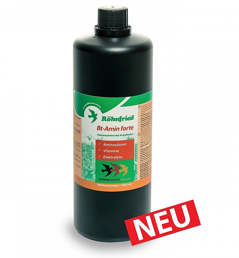 Bt-Amin forte zawiera wysokostężone i dobrze przyswajalne aminokwasy, elektrolity i witaminy z grupy B, dzięki czemu zapewnia optymalne odtrucie organizmu podczas kuracji antybiotykowych i lotów. Zawarte w nim witamy z grupy B poprawiające procesy krwiotwórcze i wzmacniające system nerwowy są niezbędne w okresie lotowym. Zastosowanie: Dawkowanie: 15ml na 1litr wody - w dniu lotu, podczas drugiego pojenia - codziennie przy kuracjach antybiotykowych - podczas pierzenia 3 razy w tygodniu Przechowywanie: Przechowywać szczelnie zamknięte i w chłodnym miejscu! Chronić przed światłem.