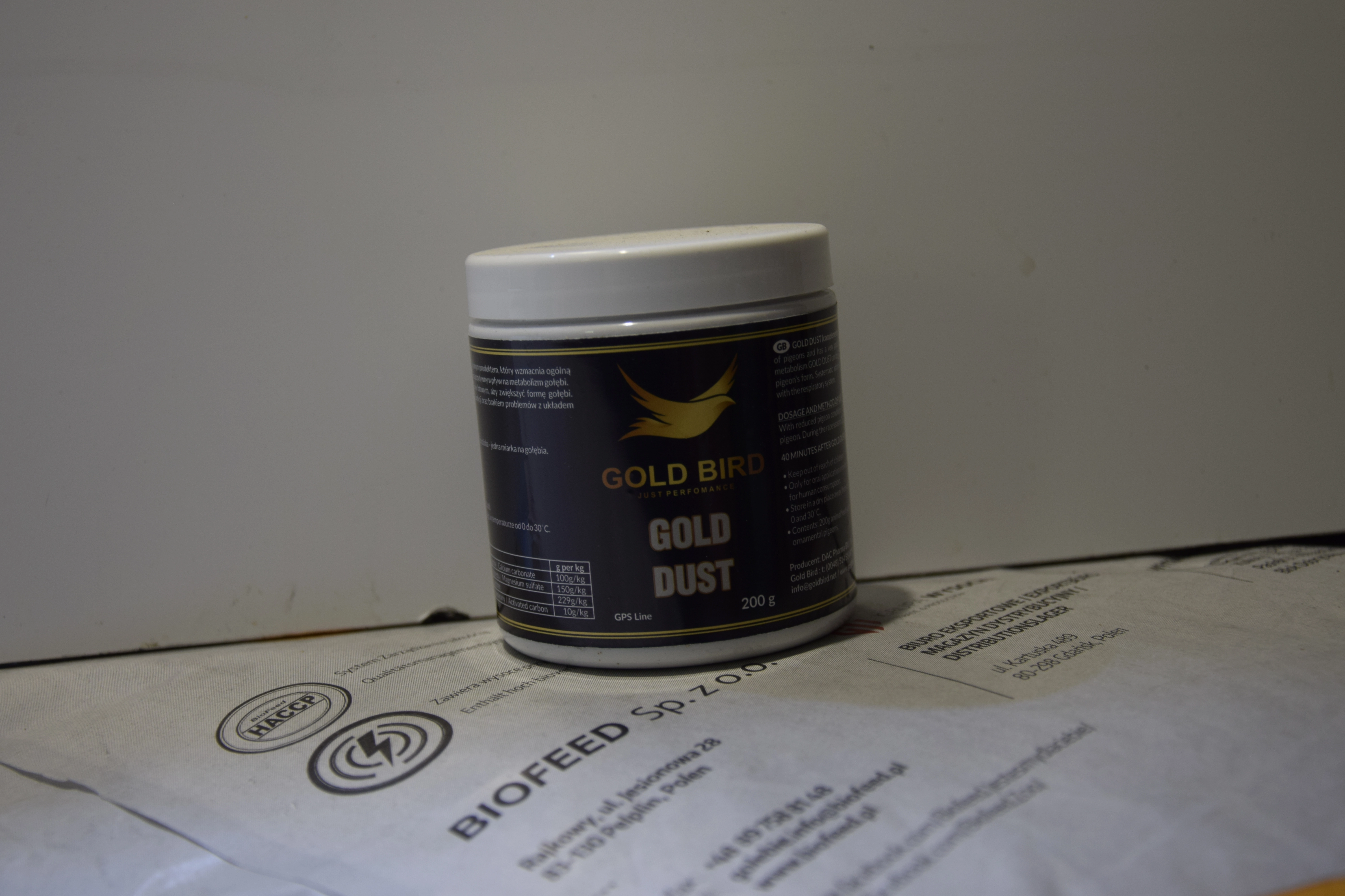 GOLD DUST (mieszanka paszowa uzupełniająca) jest nowoczesnym i unikalnym produktem, który wzmacnia ogólną kondycję gołębi oraz ma bardzo dobry wpływ na drogi oddechowe jak i również ma pozytywny wpływ na metabolizm gołębi. GOLD DUST można podawać o każdej porze roku, a w szczególności gdy zaobserwujemy spadek kondycji gołębi, czy to w sezonie lotowym czy poza nim. GOLD DUST podwyższa formę gołębi. Systematyczne podawanie GOLD DUST skutkuje kapitalnym stanem ogólnej kondycji oraz brakiem problemów z układem oddechowym i trawiennym.