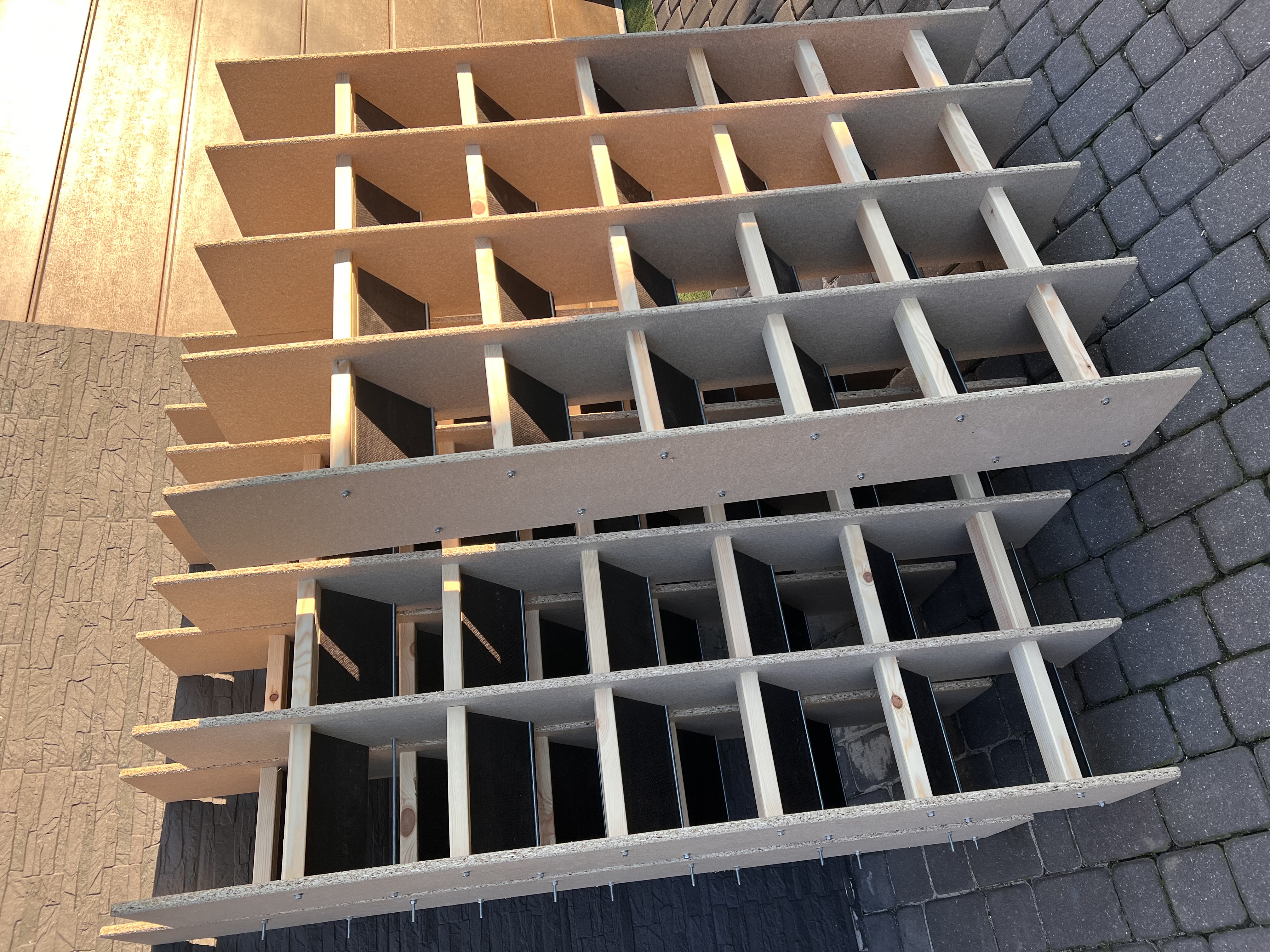 Regał spoczynkowy dla młodych gołębi oraz wdów wysokość 165 cm szerokość 100 cm głębokość 23 cm 24 miejsca