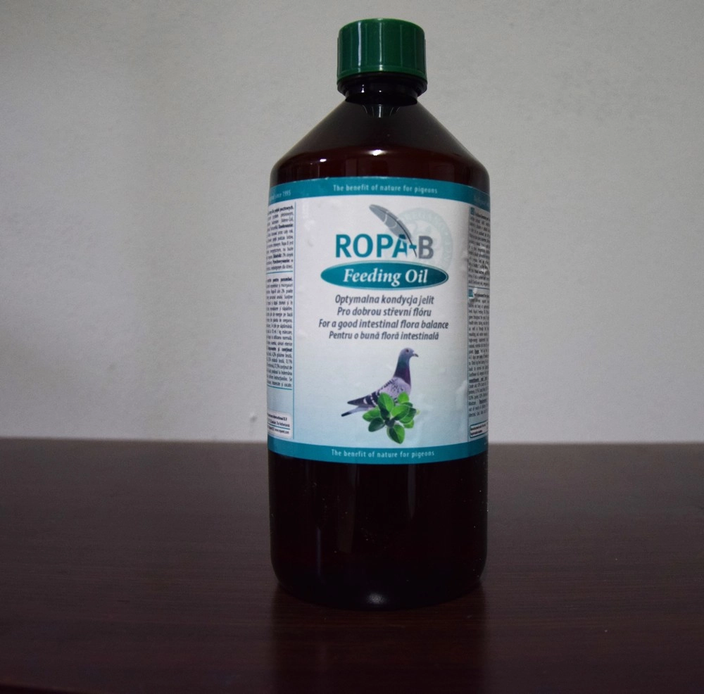 Olej na karmę 2% czystego olejku z oregano, dla utrzymania prawidłowej flory bakteryjnej przewodu pokarmowego. Pomaga zachować zdrowie gołębi podczas lotów, rozpłodu, pierzenia oraz w sezonie zimowym. ROPA-B jest produktem w 100% naturalnym, energetycznym, na bazie naturalnie uzyskanego wyciągu z oregano. Zastosowanie: przeciw bakteriom e-coli, salmonella, streptokokki, pasteurella, kokcydiom, pasożytom, grzybom pleśniowym. Dawkowanie: 5 ml / 1 kg karmy. Można stosowac przez cały rok.