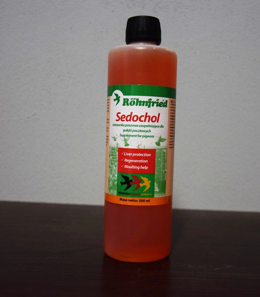 Sedochol wspomaga budowę mięśni oraz optymalny rozwój upierzenia, poprawia spalanie tłuszczu, wspomaga regenerację oraz metabolizm wątroby - działa odtruwająco na krew i watrobę. Stosować po locie, w okresie chowu oraz pierzenia. 10ml na 1l wody lub 750g karmy.