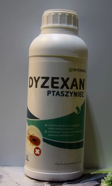 STOSOWANIE U DROBIU HODOWLANEGO: DYZEXAN Ptaszyniec przeznaczony jest dla wszystkich gatunków i grup produkcyjnych drobiu w celu zwalczania ptaszyńca kurzego (Dermanyssus gallinae). Można go stosować w każdym okresie odchowu, gdyż nie wymaga okresu karencji.